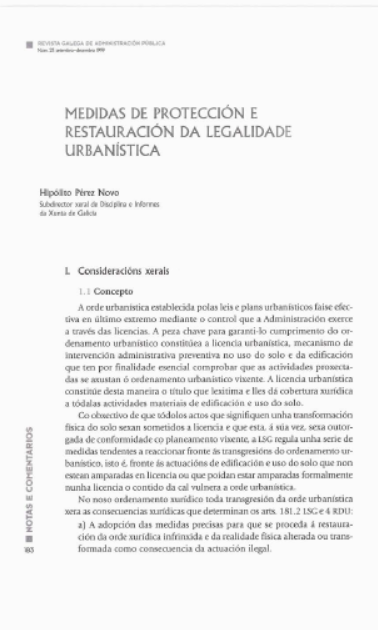 Medidas de protección e restauración da legalidade urbanística