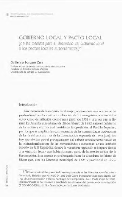 Goberno local e pacto local (desde medidas para o desenvolvemento do goberno local ata pactos locais autonómicos)