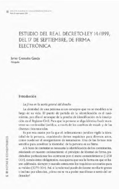 Estudio del real decreto-ley 14/1999, del 17 de septiembre, de firma electrónica
