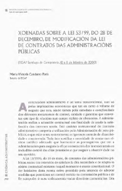 Xornadas sobre a le1 53/99, do 28 de decembro, de modificación da lei de contratos das administracións públicas