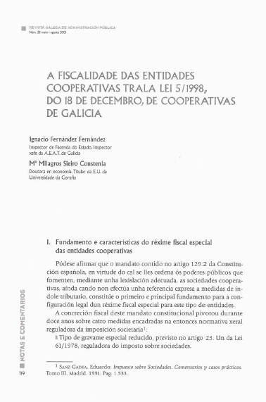 A fiscalidade das entidades cooperativas trala lei 5/1998, do 18 de decembro, de cooperativas de Galicia