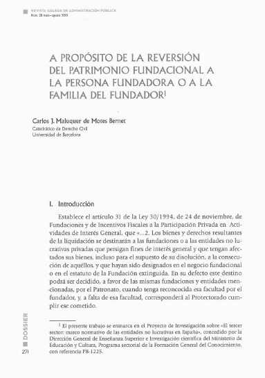En canto á reversión do patrimonio fundacional para a fundadora ou a familia do fundador