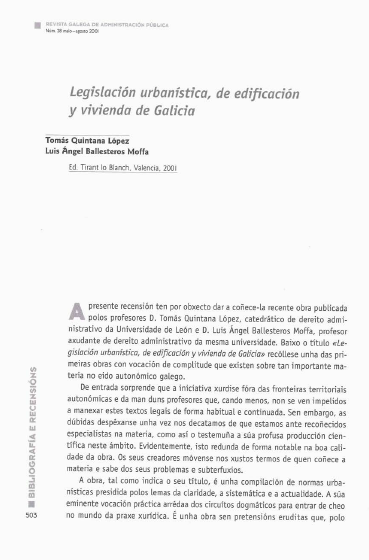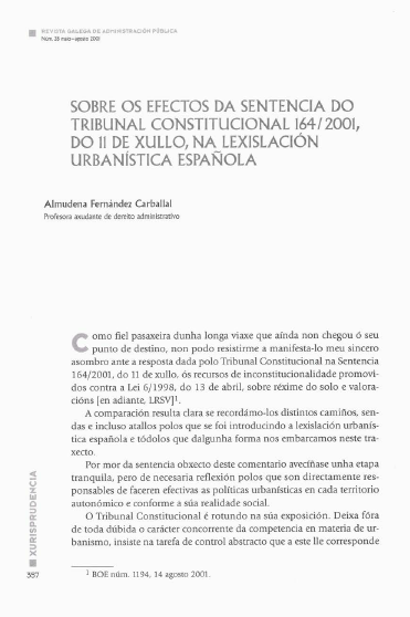 Sobre os efectos da sentencia do tribunal constitucional 164/ 2001, do 11 de xullo, na lexislación urbaníst1ca española