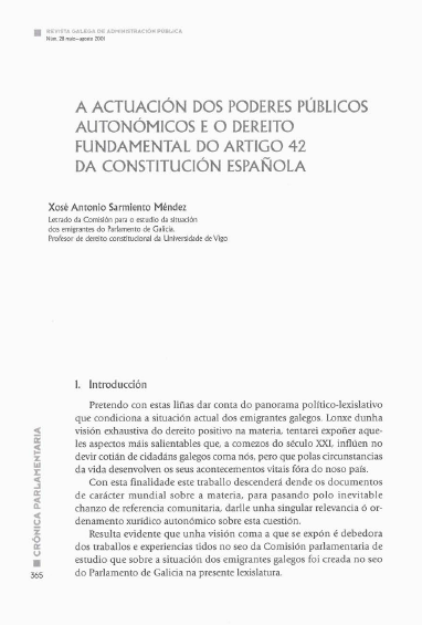 A actuación dos poderes públicos autonómicos e o dereito fundamental do artigo 42 da constitución española