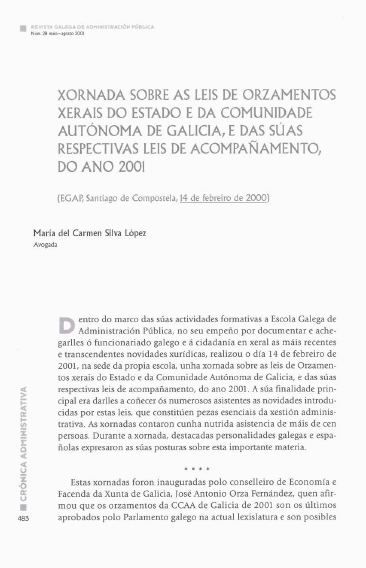 Xornada sobre as leis de orzamentos xerais do estado e da comunidade autónoma de galicia, e das suas respectivas leis de acompañamento, do ano 2001
